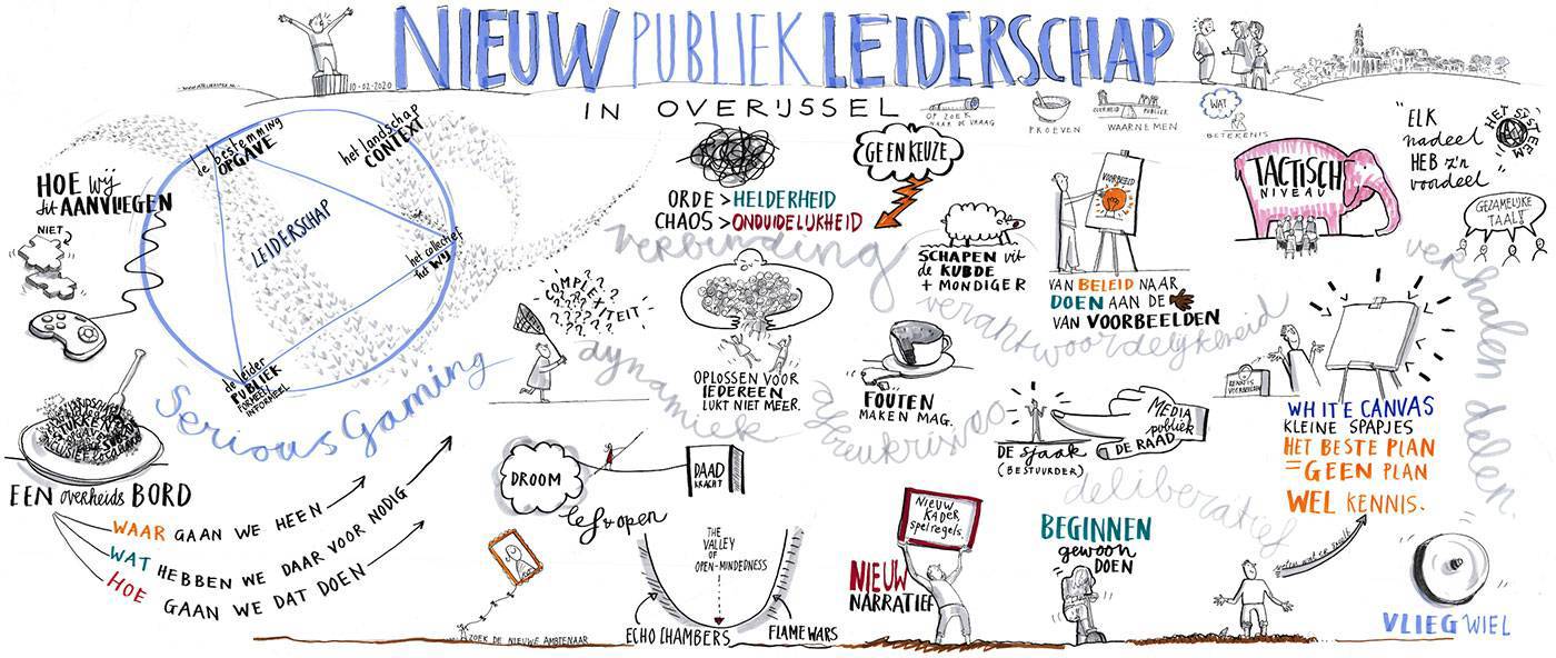 De centrale vraag van deze verkenning is wat de grote opgaven in Overijssel vragen van het publiek leiderschap. Als onderdeel van deze verkenning is er dan ook een werkgroep gevormd. Een aantal strategen en bestuursadviseurs waren bereid om samen met Trendbureau Overijssel te verkennen wat hun opgaven vragen van publiek leiderschap. Daarbij delen zij de inzichten uit de werkgroep met hun collega’s in Overijssel. Bijgaand vindt u een visueel verslag en blog van de werkgroep.