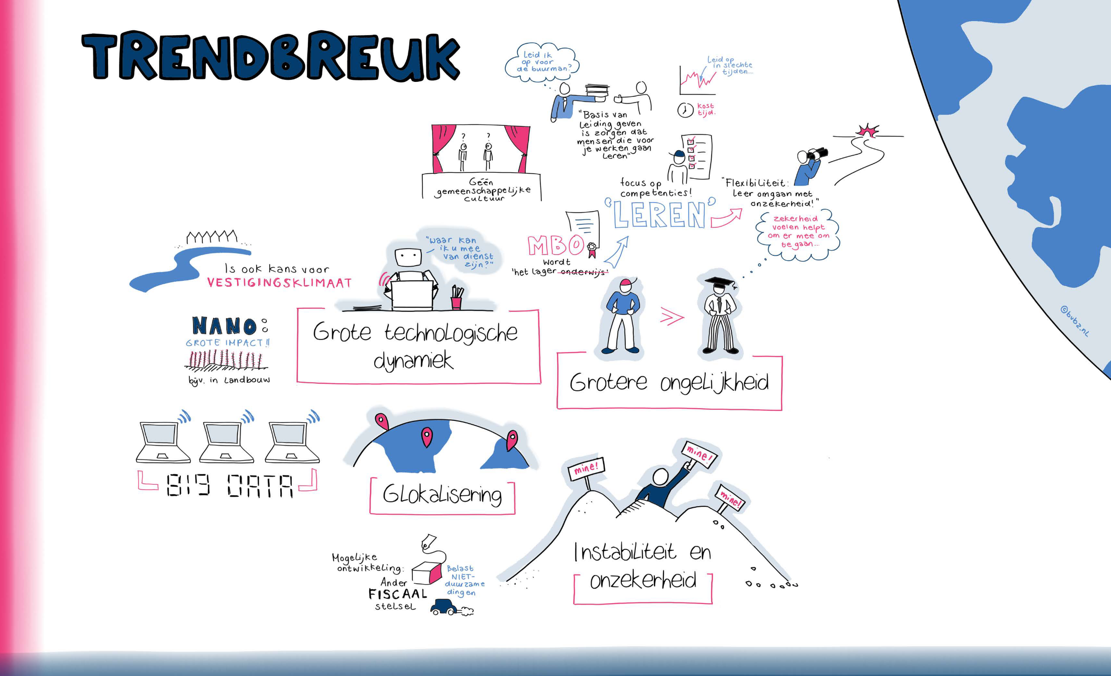 Als het om beleid en de toekomst gaat, is het gebruikelijk om van continuïteiten uit te gaan. Dat is ook begrijpelijk. Bij prognoses begin je met harde feiten: de gegevens uit het verleden. Tegelijk is dat ook de valkuil. Het kan zijn dat het toekomstige beleid vooral gericht is op de vraagstukken uit het verleden. De focus op trendbreuken is onzekerder, maar is ook meer toekomstgericht. Je anticipeert in je economisch beleid op de vraagstukken van de toekomst. De benadering die omslagpunten centraal stelt is het meest onzeker, maar waarschijnlijk het belangrijkst.